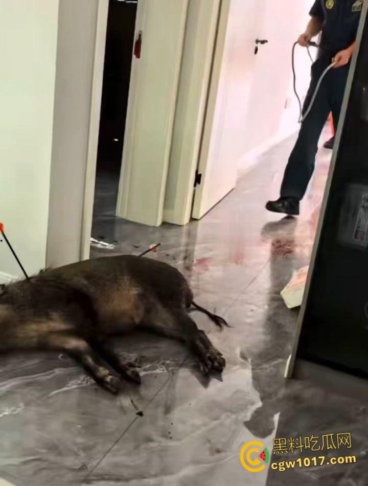 正文 安徽马鞍山和县京都公馆,一头野猪将居民门撞坏后跑进居民家里,公安携带猎犬和道具将野猪麻醉 ! admin V管理员 /2024-12-28/1阅读/0评论 1228 文章最后更新时间2026年01月10日,若文章内容或图片失效,请留言反馈! 安徽马鞍山和县京都公馆小区里,一头野猪突然发疯,猛地撞碎居民家玻璃门,呼啦一下钻进屋子,闹得屋里鸡飞狗跳。居民一家吓坏了,野猪在客厅里转悠,拱柜子撞沙发,玻璃碎渣满地,家具东倒西歪。邻居听到动静,报了警,当地公安和林业部门动作麻利,带上枪支、网具、麻醉工具,还有两条训练有素的猎犬,风风火火赶到现场。公安局特警大队现场指挥,大家分工明确,先清场疏散周边居民,避免意外。#安徽 #马鞍山 #和县 #京都公馆 #猎犬 #野猪 #射杀 #二师兄 #野猪 #发疯 #麻醉
