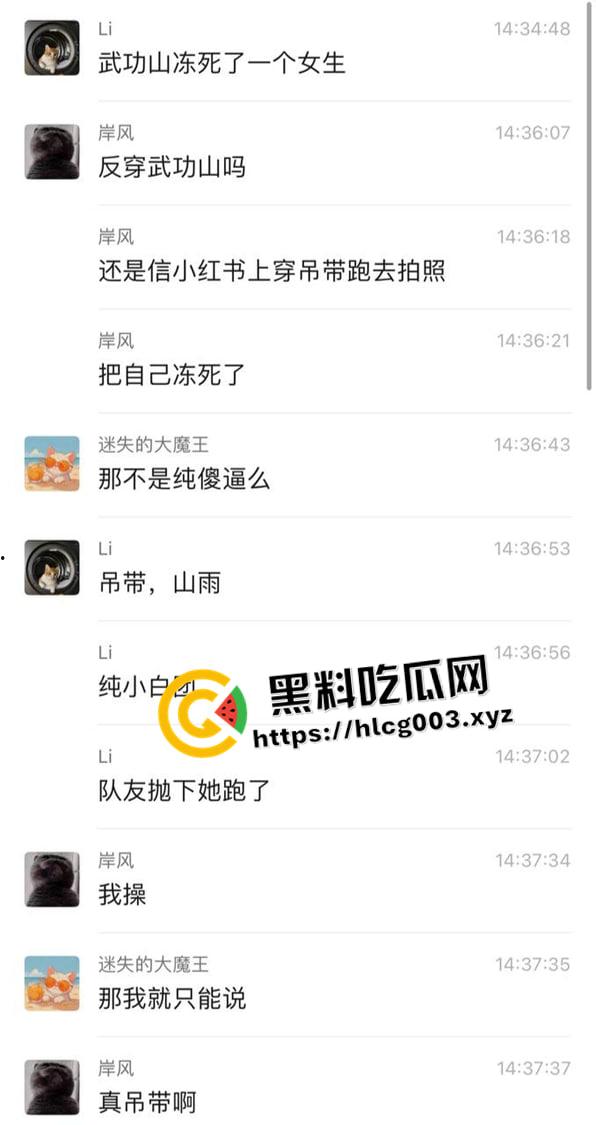 正文 武功山吊带女被冻死!97年妹子跟团爬武功山 走丢失温而死 小红书害死人 admin V管理员 /2025-08-09/1阅读/0评论 0809 文章最后更新时间2026年01月16日,若文章内容或图片失效,请留言反馈! 武功山上全是吊带!97年妹子听信小红书穿着吊带跟团武功山,遇上山雨失温而死。可怜的妹子下辈子别再相信网上的无脑攻略了,妹子被找到的时候都被冻僵到底了,惨不忍睹。官方 TG 频道— 官方 TG 群— 站长【瓜瓜】—商务【方想】—官方推特—